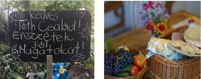 Reggelire előre megbeszélve igényeltünk egy kosárka elemózsiát. Nos, ha létezik 2-4 személyes bőségtál, akkor itt az ideje, hogy megalkossunk a bőségkosár szókapcsolatot. Mint Mary Poppins mindent elnyelő táskája, úgy éreztük magunkat mi is a kosár kipakolása közben, amely csordultig van töltve szeretettel, melyet szállásadóink mindenféle helyi termelők portékájával fejeztek ki… Házi kenyér, különleges kézműves sajtok, felvágottak, joghurtok, müzli, tojás, zöldségek-gyümölcsök, minden mi szem-szájnak ingere. Két reggelire is bőven elég volt… pssszt, titok. 😊 Speciális diéta esetén, időben előre jelezve igyekeznek kielégíteni az igényeket.