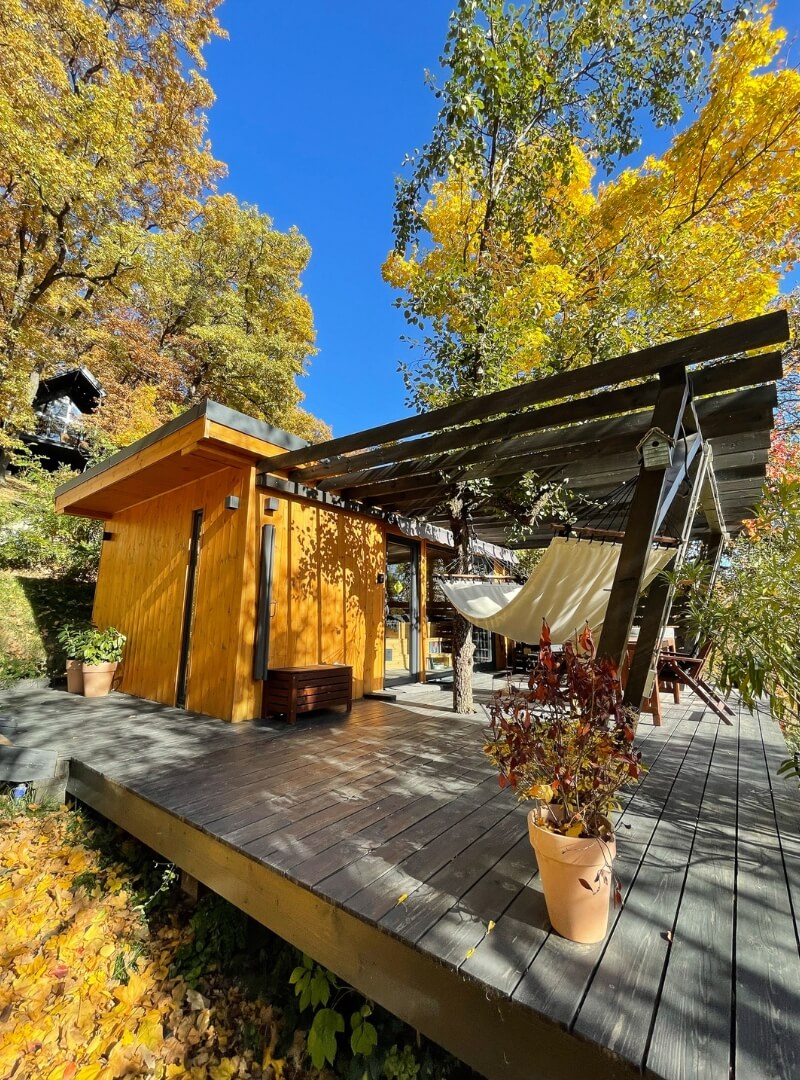 A Mini ideális választás azok számára, akik szeretnének lelassulni és kipróbálni az apró házak életérzését anélkül, hogy lemondanának a modern komfortelemekről. A saját, egész évben fűtött fürdődézsa a teraszon különleges élményt nyújt, akár nappali pihenéshez, akár esti kikapcsolódáshoz.