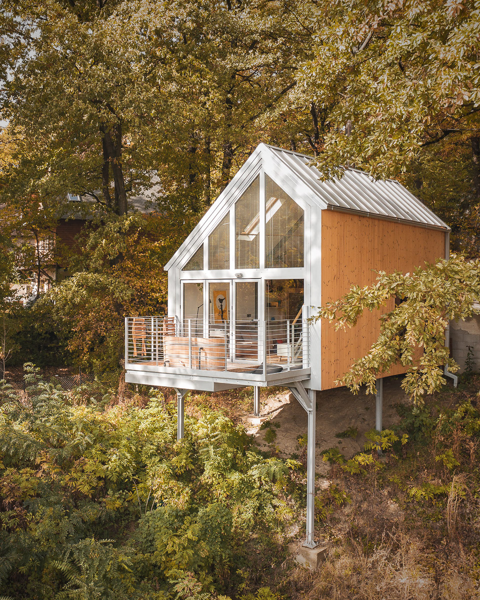 A kétszintes Sárga Rigó pihenőház a fényről szól: déli fekvésének és hatalmas üvegfelületeinek köszönhetően egész nap világos, napfényes tereket kínál. A síkfőkúti völgy panorámája szinte végigkíséri a bent töltött időt, legyen szó reggeli kávéról vagy egy nyugodt esti beszélgetésről.